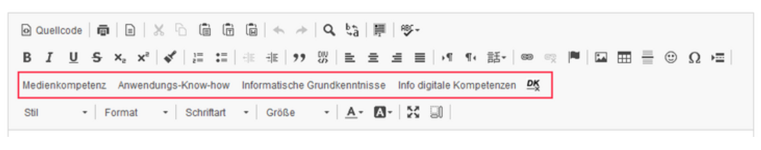 Mit den ersten drei Buttons formatieren Sie den Text für die jeweilige digitale Kompetenz.